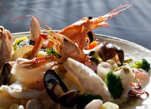 <La concezione dei ristoranti di pesce in realtà è molto particolare, ci sono diverse variabili, una è sicuramente la pescosità dei nostri mari che sta diminuendo, l’impazzire delle stagioni che ha mutato la stagionalità di tanti pesci ed ora si pescano per periodi più prolungati, il mercato che a volte non riesce a sopperire all’esigenza e i prezzi che diventano folli anche in virtù del fatto che c’è molta richiesta e poca offerta. In un ristorante di pesce puoi spaziare tra Crostacei, Molluschi, pesci da lisca: queste sono le tre categorie ed i sottoprodotti che possono essere la bottarga, piuttosto che un marinato o una cosa che tu fai con una parte specifica del pesce, però i soggetti sono quelli e rispetto anche a tanti anni fa si fa più fatica a reperire alcune cose>.