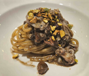 Chef Andrea prosegue a descriverci la sua cucina con entusiasmo, si vede quanto ama il suo lavoro e ci svela alcuni segreti dei suoi piatti.