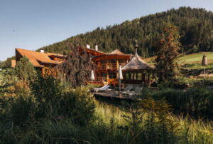 Le 63 camere, intrise di larice, cirmolo e abete rosso, provenienti dai boschi dell’Alpe di Luson e illuminate dal calore di trenta camini in pietra calcarea delle Dolomiti, offrono una sensazione di quiete e protezione. L’energia proviene da fonti rinnovabili locali, mentre gli arredi, realizzati dai maestri intagliatori senza l’ausilio di colle, chiodi né materiali sintetici, caratterizzano gli ambienti secondo lo stile wood wellness design e completano un concetto di ospitalità sostenibile che mette al centro il rispetto dell’ambiente e del benessere personale.