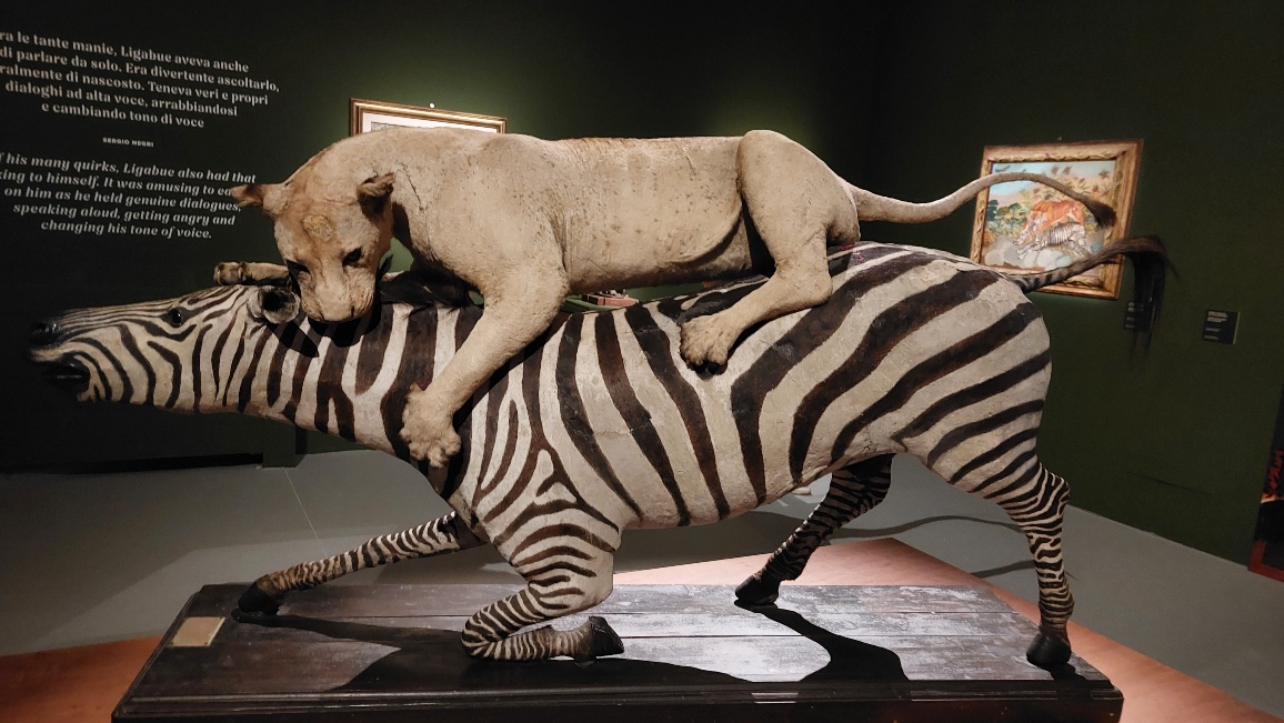 - Leone e leopardo, esempio visto dall’autore al Museo Spallanzani di Reggio Emilia, presente, come altri animali a lui cari, in mostra.