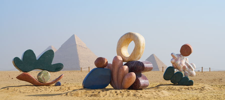 Dieci artisti internazionali, per una intera settimana, davanti alle Piramidi di Giza: installazioni, sculture e interventi site-specific costruiscono un dialogo diretto con uno dei luoghi più affascinanti al mondo