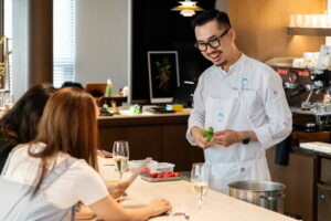 Innovatore della pasticceria contemporanea, Justin Lee trasforma i dolci in esperienze multisensoriali. L’incontro inizia con un brindisi a base di champagne o tè frizzante analcolico, seguito da un tour esclusivo in cucina per scoprire i segreti delle sue creazioni. Dopo una sessione di Q&A con lo chef, gli ospiti saranno invitati a cimentarsi in abbinamenti audaci e impiattamenti artistici, trasformando i dessert in autentiche opere d’arte.