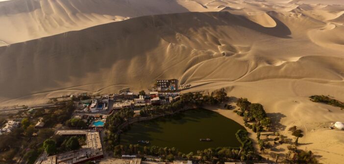 A pochi chilometri dalla città, l’oasi di Huacachina regala uno dei panorami più suggestivi del continente: una laguna color smeraldo incastonata tra dune dorate, in un contrasto quasi irreale tra acqua e deserto. Secondo la leggenda, la laguna nacque dalle lacrime di una giovane principessa che, per sfuggire agli sguardi indiscreti, si trasformò in sirena e ancora oggi proteggerebbe il lago.