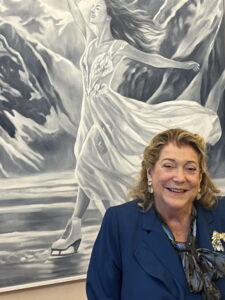 Diana Bracco con alle spalle Alpensinfonie, La reine des Alpes, di Gian Marco Montesano