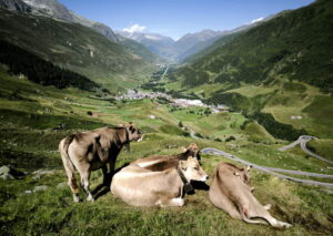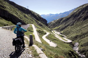 Il Passo del S.Gottardo è una salita che ogni ciclista deve fare almeno una volta. Chiamata la “Tremola” per via del fondo in pavè, molto ben disegnata, mai dura, fotogenica, e che in 13km per 923m. di dislivello porta ai 2106m. del Passo del S. Gottardo dove c’è il Museo Sasso San Gottardo, e inizia la discesa verso Hospental, grazioso villaggio con una torre del XII secolo ed in breve giungere ad Andermatt, moderna e cementizia stazione sciistica. Lo sviluppo della tappa è ridotto, ma le fermate per gli scatti fotografici, la visita al museo, e la distrazione panoramica riempiranno la giornata. Per i più forti e ambiziosi esiste l’opzione, ad Hospental, di deviare 6km verso Realp, salire i 12 km x 891m del Passo Furka, tornare ad Hospental e scendere a Andermatt, lontana solo 3 km.